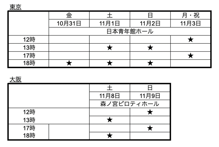 東京公演(日本青年館ホール):2025年10月31日(金)〜11月3日(月・祝)