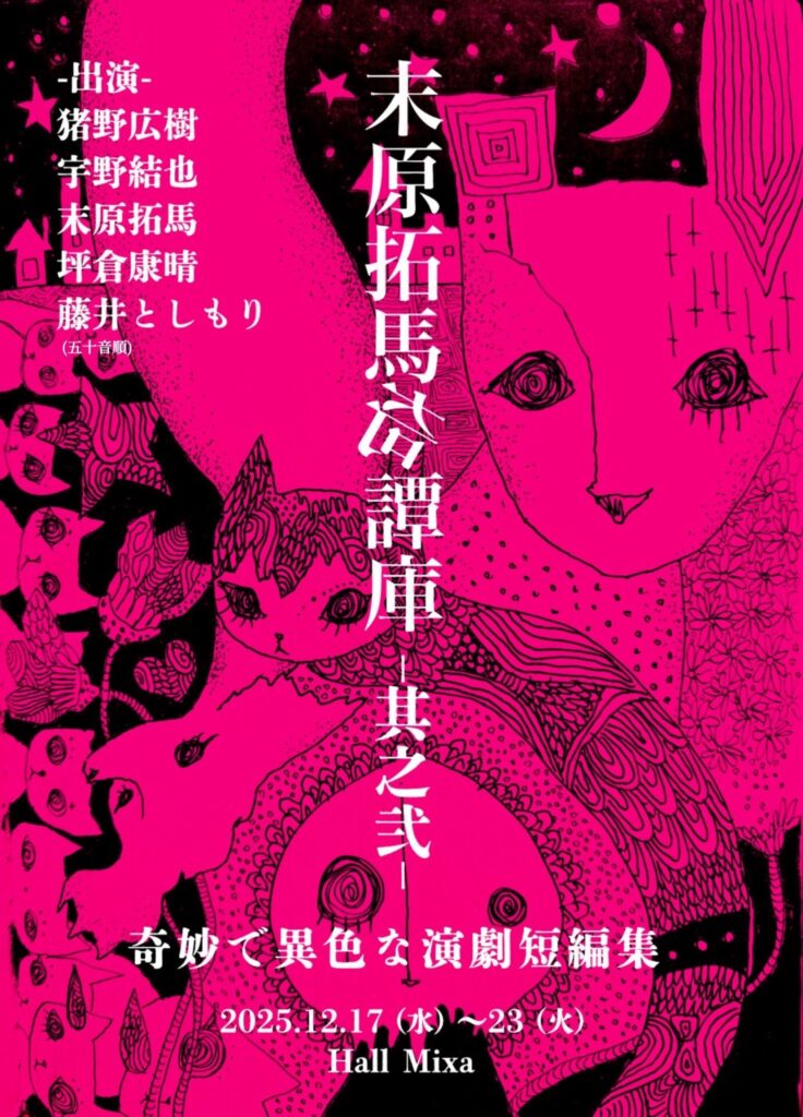 猪野広樹・宇野結也・坪倉康晴ら出演!末原拓馬オムニバス舞台公演『末原拓馬奇譚庫-其之弐-』2025年12月Hall Mixaにて上演決定!