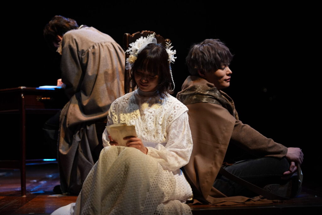 四面舞台という構造の中で、観る位置によって人物の表情や距離感、言葉の受け取り方までもが変化し、同じ場面であっても見るたびに異なる印象を残す。