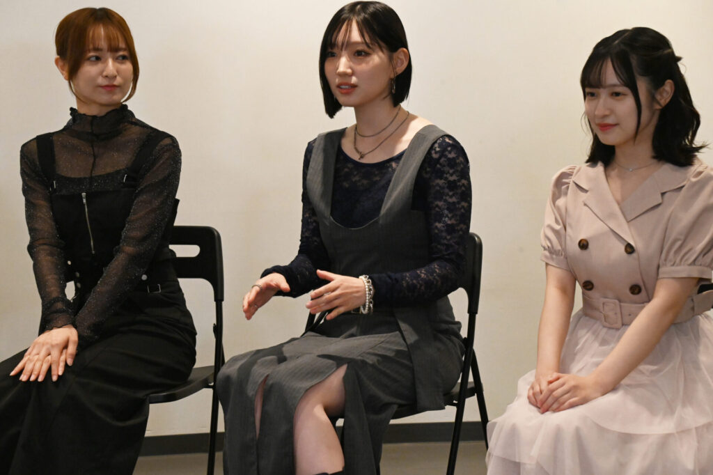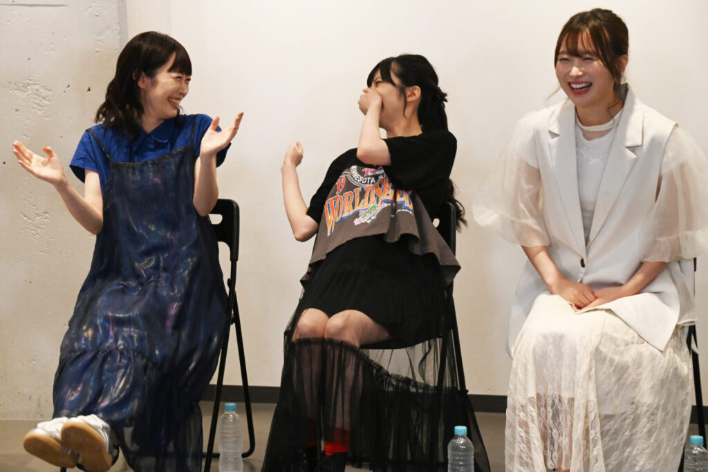太田「私はスクリームとボーカルが担当で楽器がないので、歌唱レッスンをしています。その際、先生にかれりんと普段の喋り方が真逆というか、声質が真逆だと思うと言われたのですが、結那ちゃんとの合同レッスンの時に『えっ!?月歌ちゃんの歌い方!』って思って、感動しました。普段の声からこんな変え方ってできるものなんだと思って、私もすごく刺激を受けたので頑張らなきゃなと思いました。」