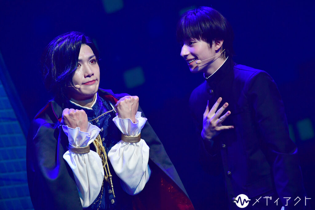 シリアスな空気の中、水江演ずる蘭丸が滑らかな歌声でバンパイアとしての苦悩を歌い上げる。