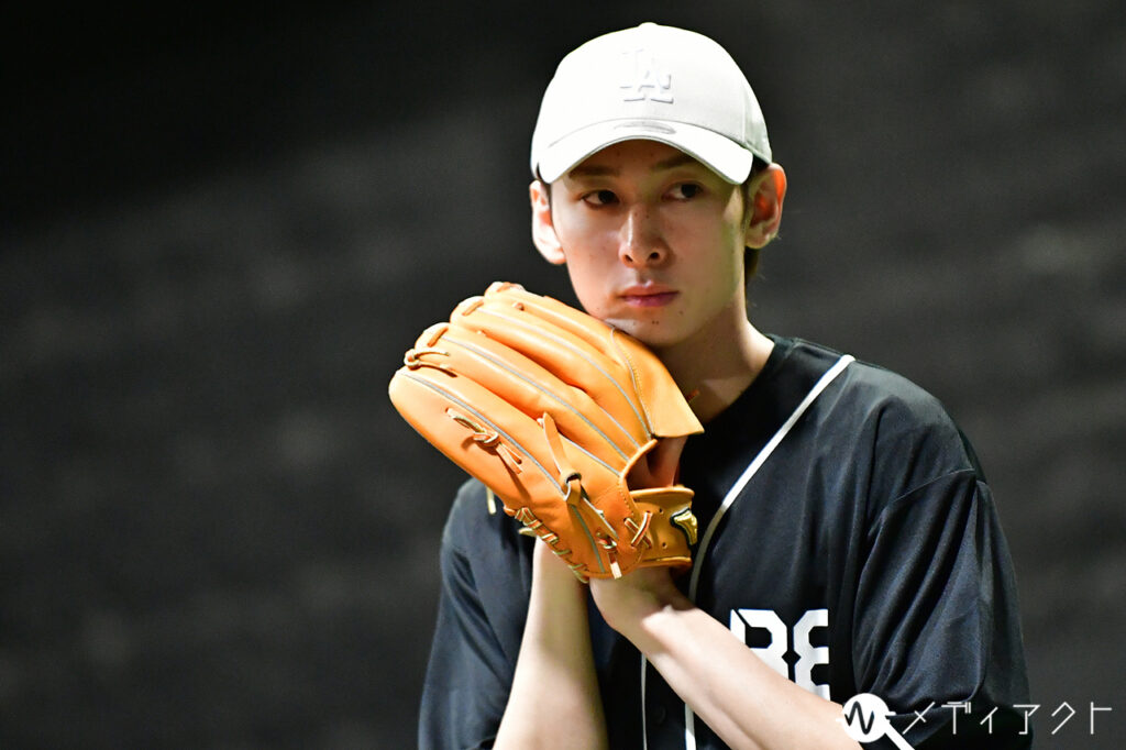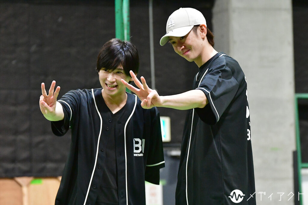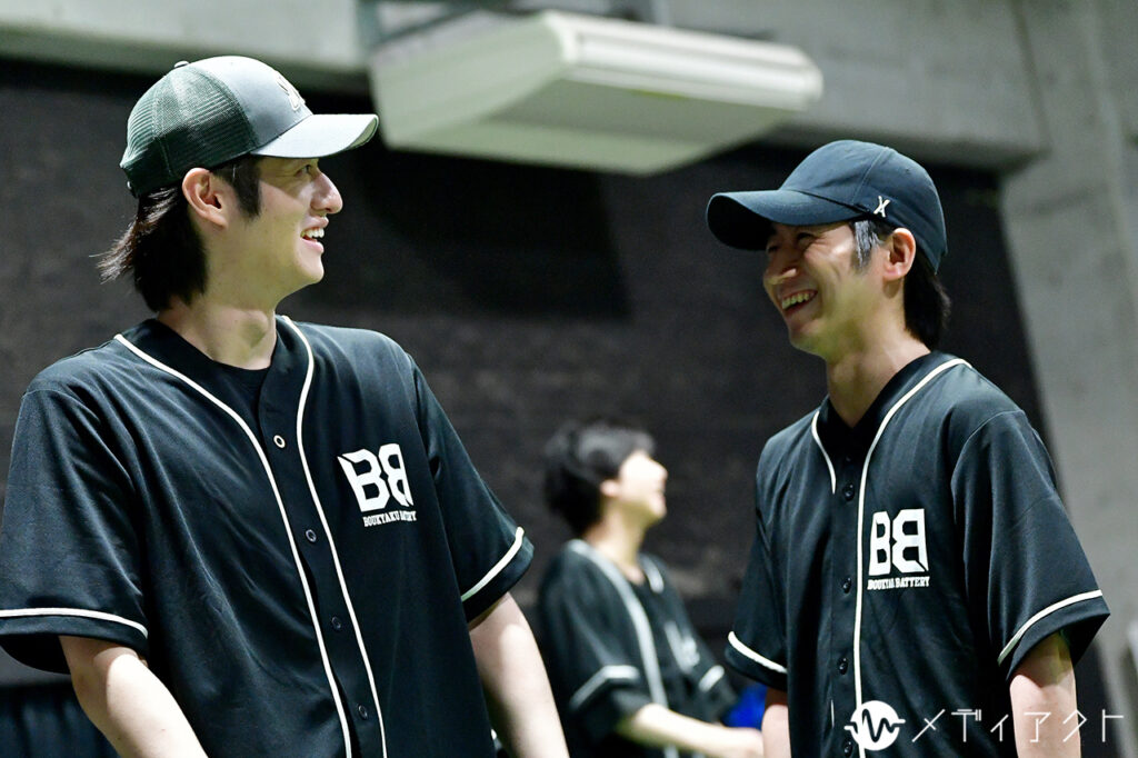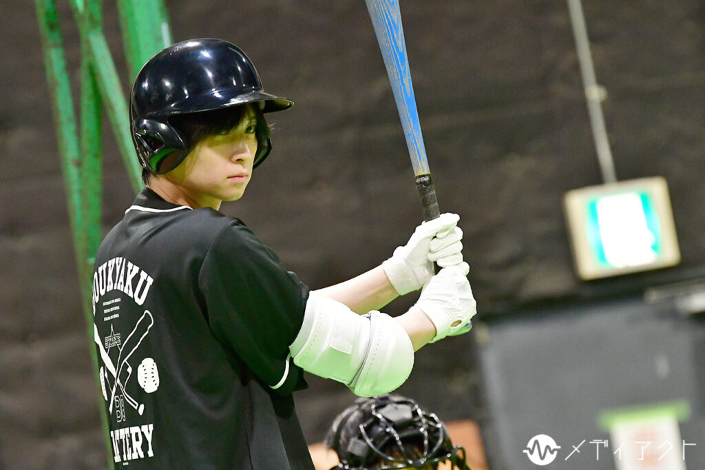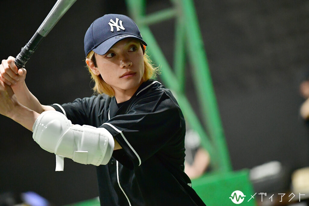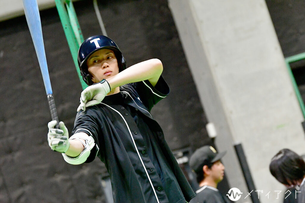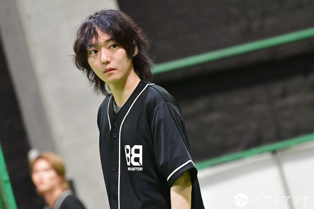 休憩時間になっても、稽古場の集中は途切れない。櫻井や上山、細谷らは浅野氏のもとへ駆け寄り、真剣な表情で先ほどの動きを確認していた。塩田はバットを手放さず、鏡の前でフォームを何度も確かめる。空気を切るバットの音が遠くまで響き、仲間から“強くて優しい最高の男”と評される国都そのものの姿を感じさせた。