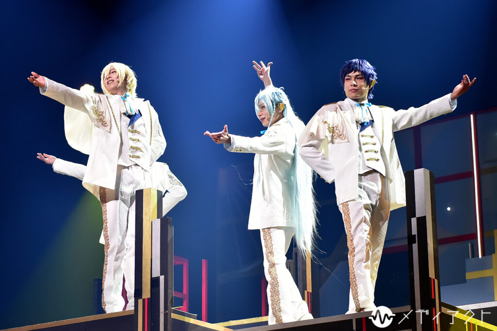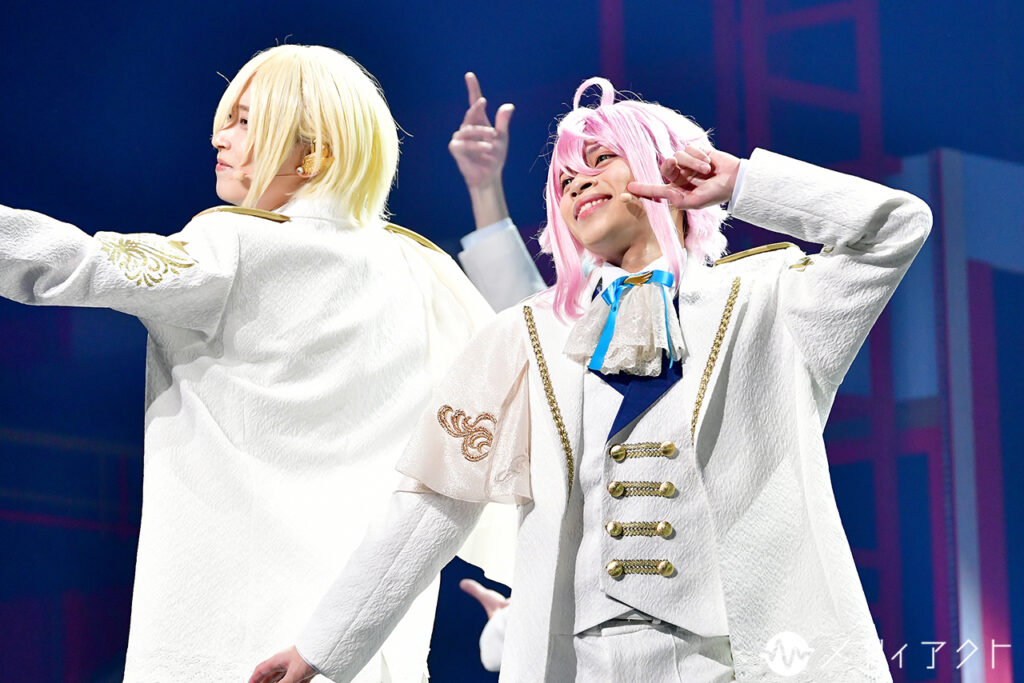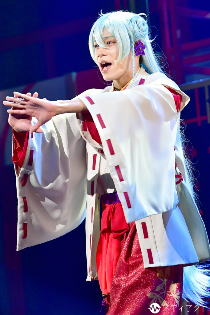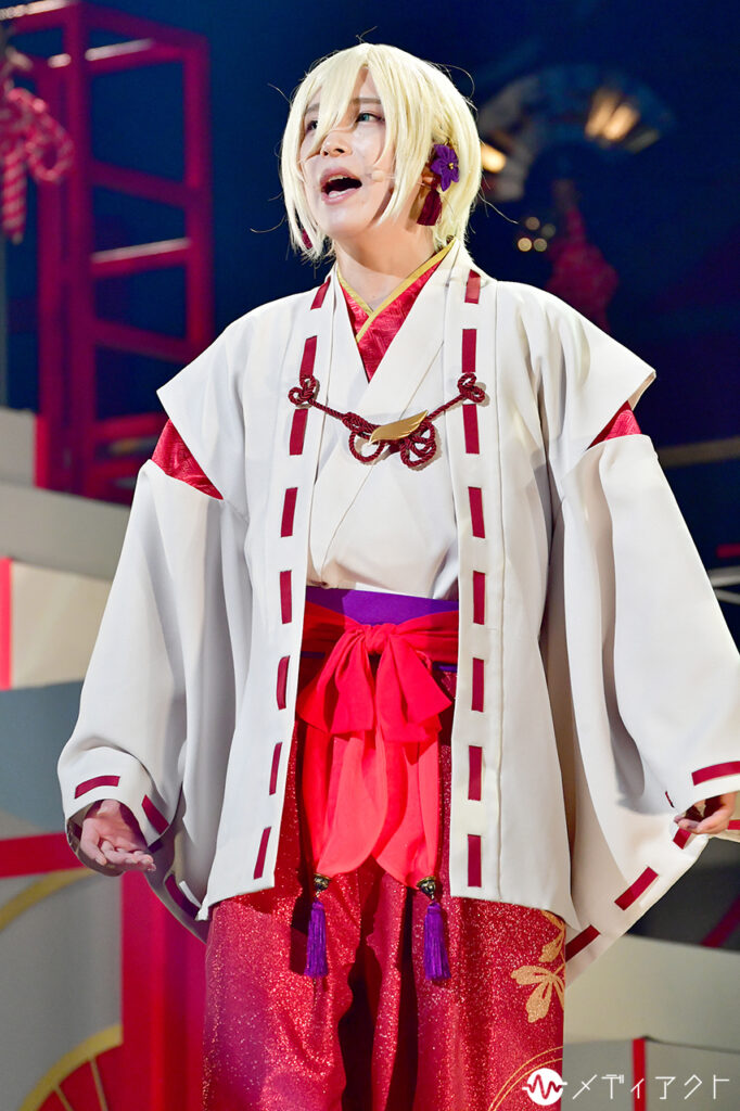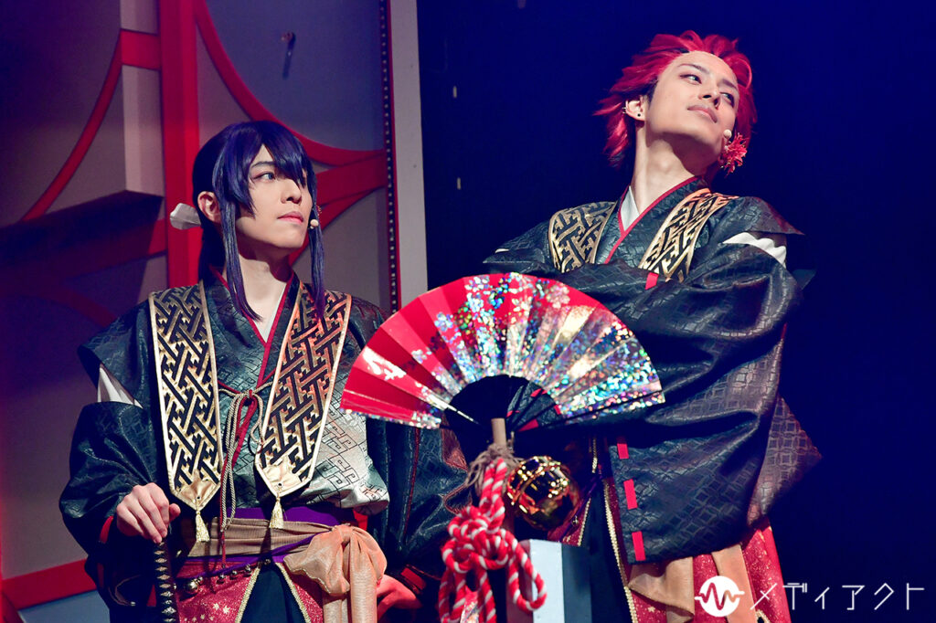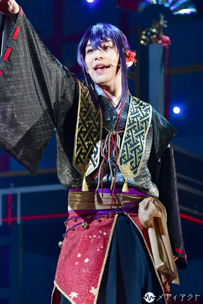 また、『紅月』の末っ子・神崎颯馬を演じるのは、原作でも颯馬のボイスキャストを担当している神永圭佑。「あんステ」への出演歴も長い。さすがの包容力とバランス感で、颯馬の持つ純粋さと『紅月』への揺るがぬ忠誠心を、感度高く客席へ届ける。