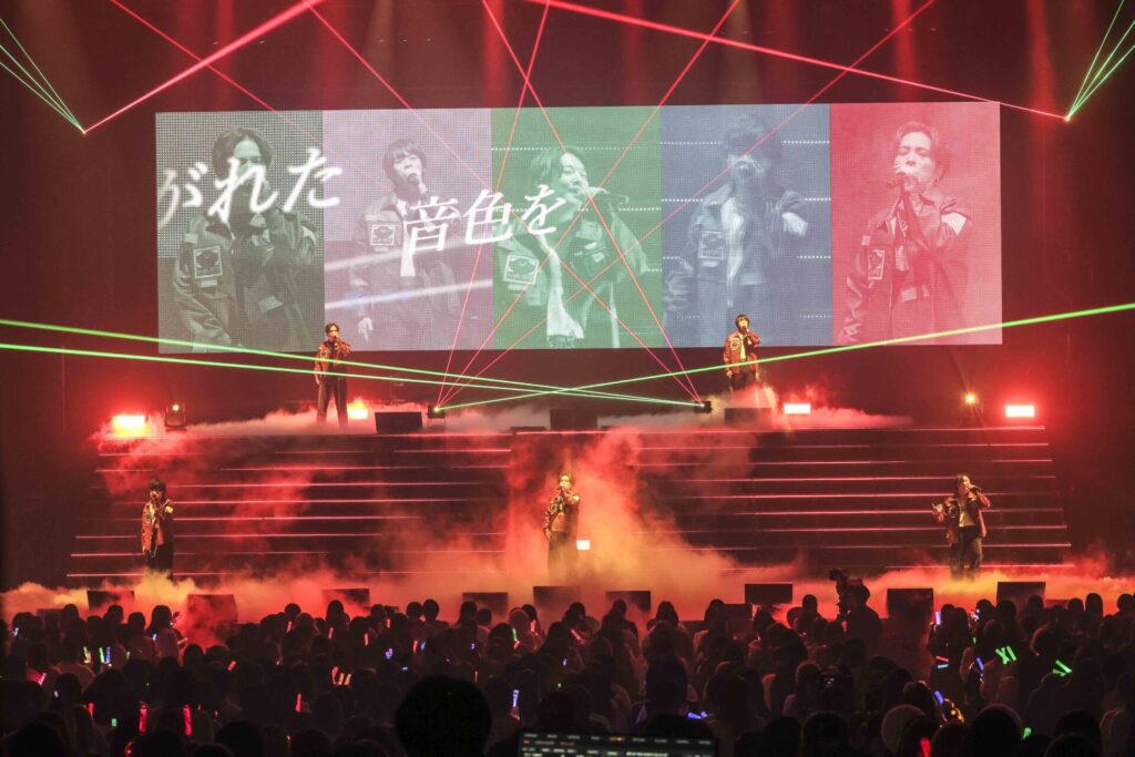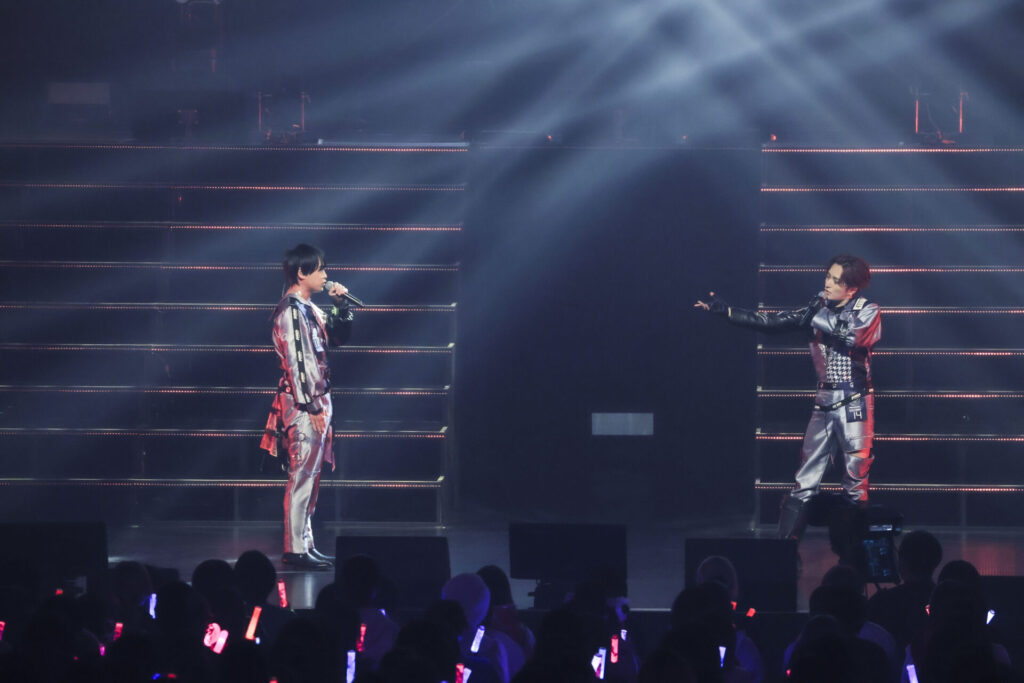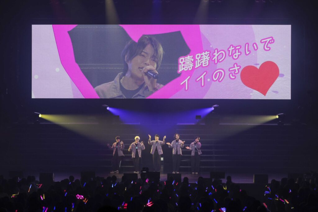 続くEv3ns(いぶんず)の「Ex-Emo」では、石谷 春貴(北片 來人役)の力強い歌い出しを皮切りに、メンバー全員で客席を煽る。重厚なビートと攻めのパフォーマンスに、場内のボルテージは急上昇。観客の歓声が重なり、熱狂が渦を巻いた。