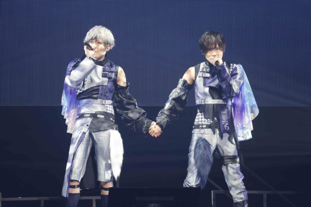 水中 雅章(鹿 礼光役)(※音源での出演)と小笠原 仁(西園 練牙役)による「二元論」は、緊張感に満ちた一曲。静まり返った会場に、小笠原の鋭い歌声が響き渡る。