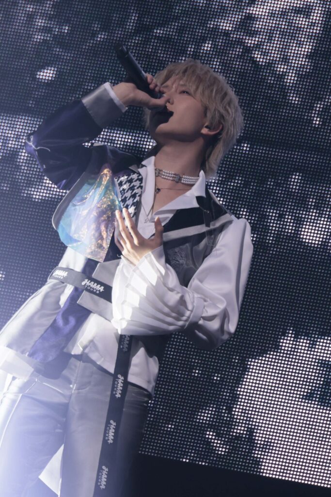 「夜にダンス」は、これまでの夜班のイメージを覆すようなアップテンポでポップなナンバー。背後のスクリーンにハートのモチーフが映し出され、かわいらしい振り付けとともに、会場を柔らかな空気で包み込んだ。